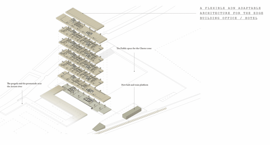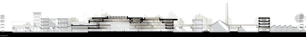 Si el futuro parece haber colonizado la zona este, hoy nos preguntamos: ¿qué futuro puede aguardar la parcela de la antigua Dubied? Actividades relacionadas con la Léchère, artesanos de alta gama, subcontratistas, talleres de artistas, empresas… una diversidad de actividades empresariales y culturales pueden ayudar a consolidar un territorio que hoy debe ser renovado. Naves industriales, talleres, almacenes, locales técnicos y administrativos que a lo largo del tiempo han sido ampliados, abandonados o demolidos constituyen el laberinto en el que se inscribe el proyecto. Nosotros entendemos que estos fragmentos de arquitectura e infraestructura pueden ser interpretados como un patrimonio en transformación que precisa un hilo conductor para su evolución. Se trata de un patrimonio que trasciende a la tradicional clasificación que distingue entre edificios a conservar y a demoler, un patrimonio en el que los fragmentos tienen la misma importancia que las relaciones de producción. En este paisaje de intercambio, pensamos que es necesario un argumento que permita tejer los fragmentos de un pasado interrumpido dramáticamente y un futuro en emergencia. Éste es el tejido con el que construir la “Dubied contemporánea”.