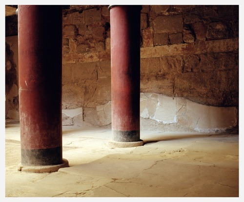 “While we were working on their series Cities, we started to photograph spaces related to the urban. This was the start of our special attention to and interest in symbolic and monumental spaces—palaces, noble villas, majestic cities—that manifest a dual nature: they were centres of power and decision-making, but also lived spaces, places of privacy for a variety of personages. This condition also speaks of a dual temporality: that which corresponds to the time of the historic event and that which belongs to personal biographical time. This particular tension in the nature of the spaces in Rooms is caught and accentuated through the fragmentation of architecture, with columns, floors or corners calling up a palpable and intimate space and resisting monumentalization. Our images do not describe these rooms or place us in them, but cause us to experience them and return to them through evocation.”