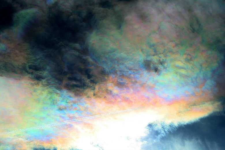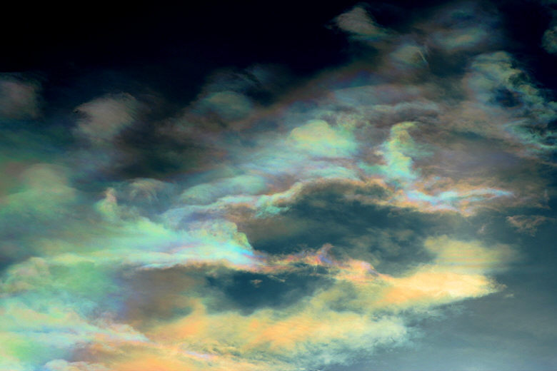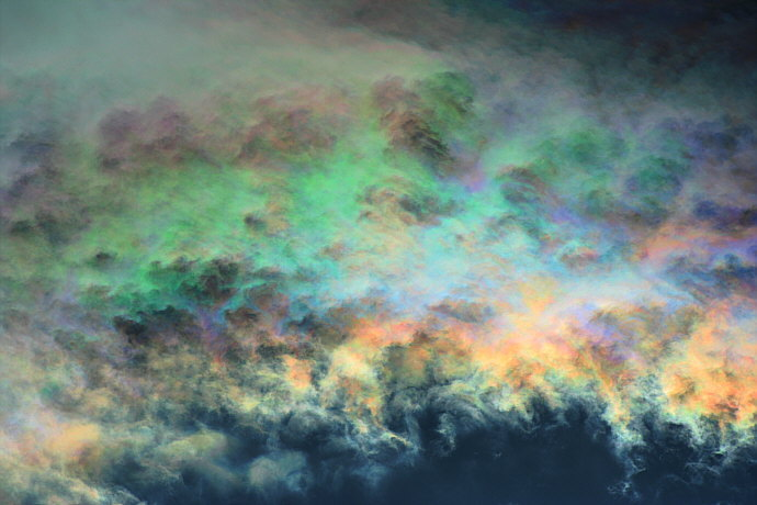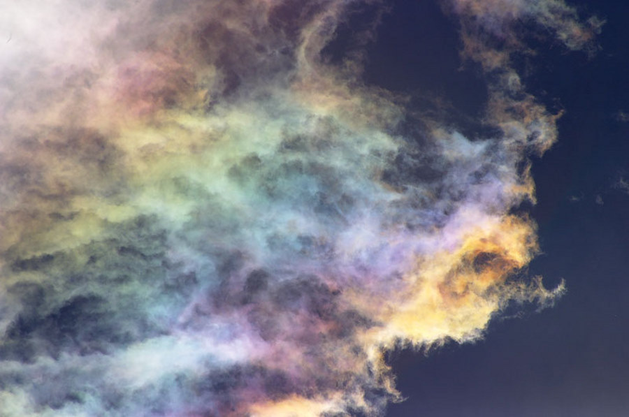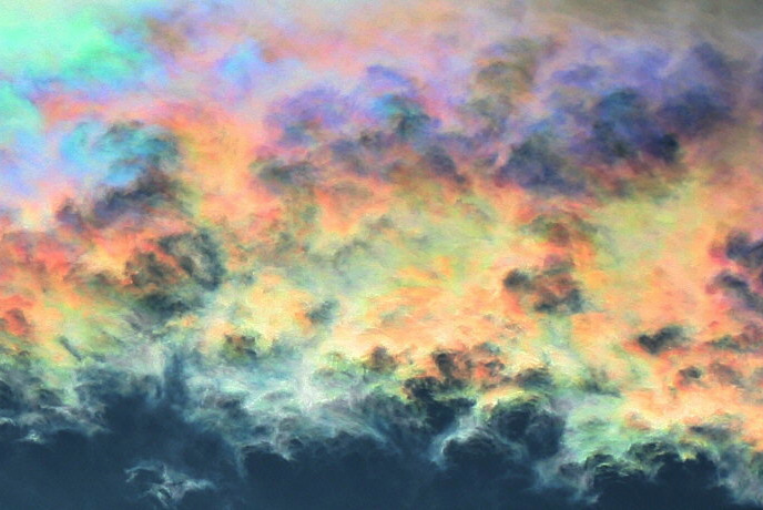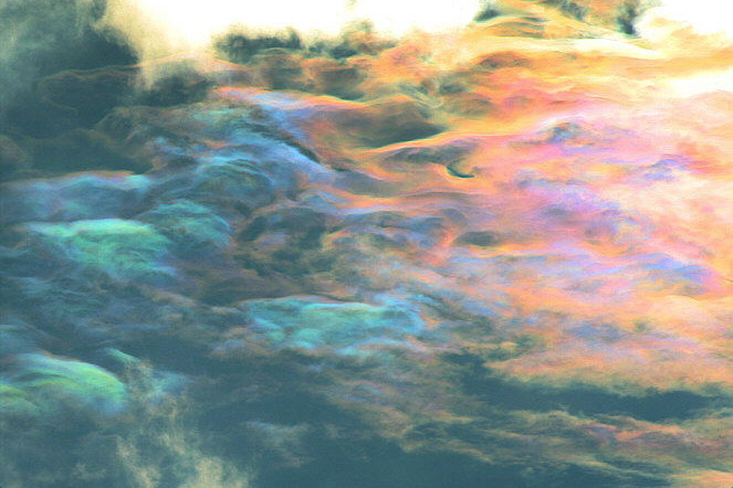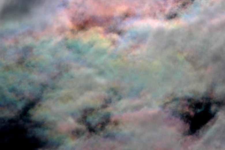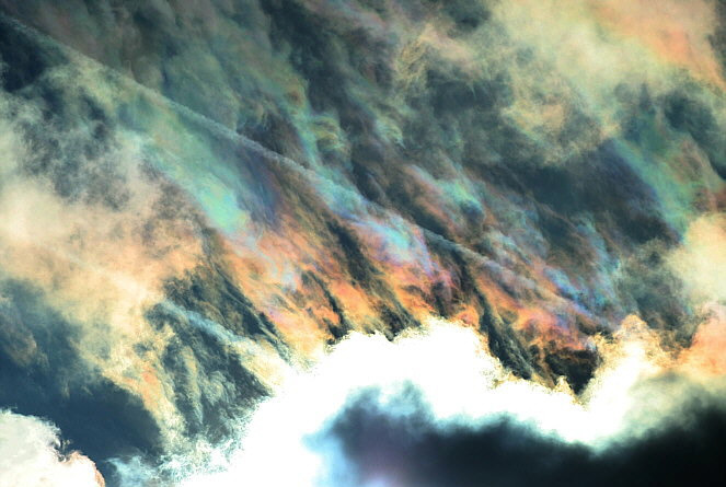 caused as light diffracts through tiny ice crystals or water droplets of uniform size, usually in lenticular clouds — photographed by rolf kohl.