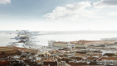 – The Exchanges SkyBank located in Praca do Comercio, the main square in Lisbon, is a new typology for the city. Completing the enclosure of the baroque civic square, it is a place in which residents, visitors and tourists exchange knowledge and actions based on desires they hold about the city they inhabit. Through selective filtering, a user with a specific desire is set on a tailored path which results in an exchange of information or services with another user who has a certain familiarity with the desired topic. The objective of the project is to create a multiplicity of exchanges by capitalizing on the acquired and specific knowledge of the resident, visitor and tourist.
